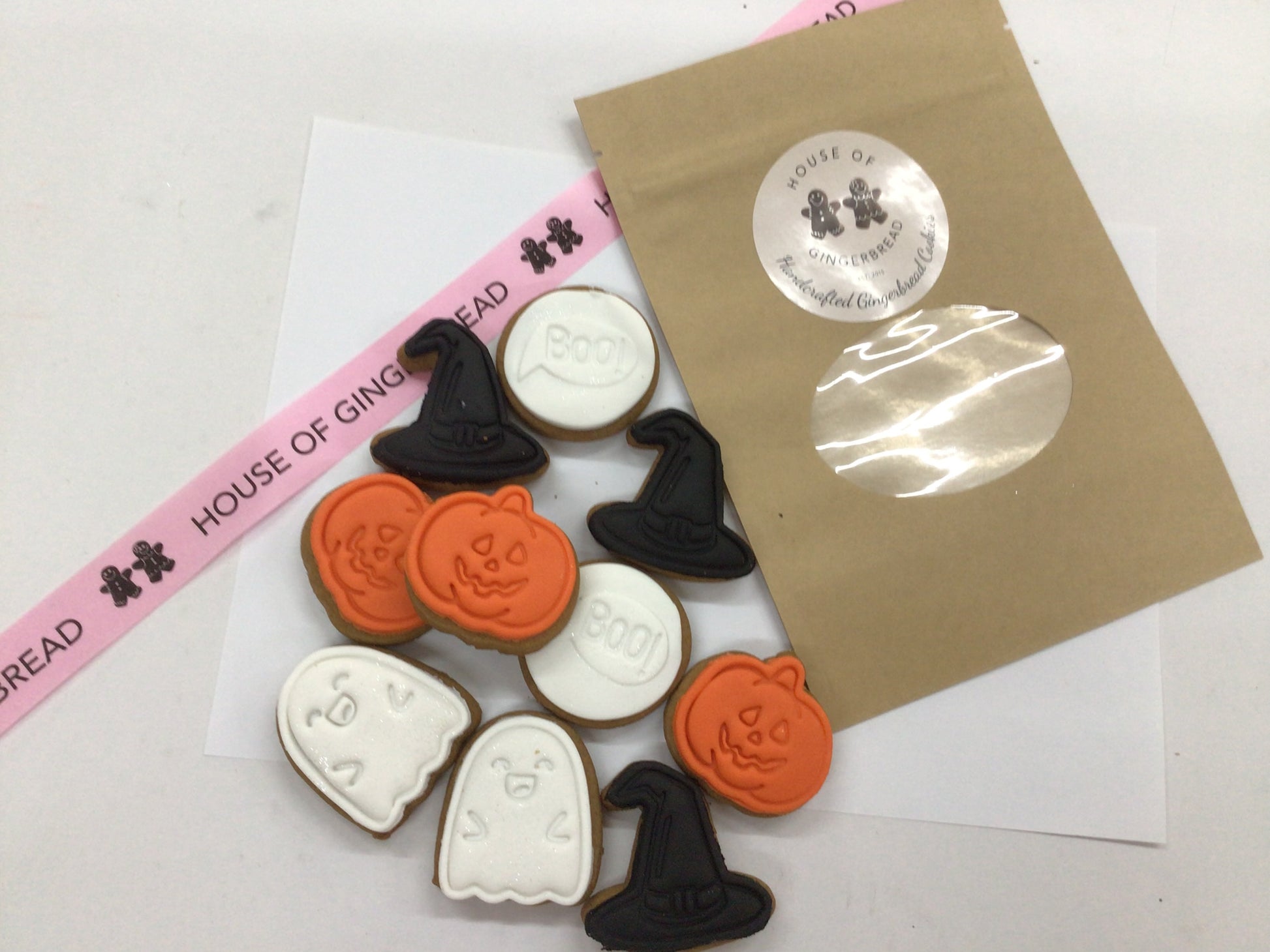 Bite sized Halloween gingerbread cookies topped with fondant royal icing