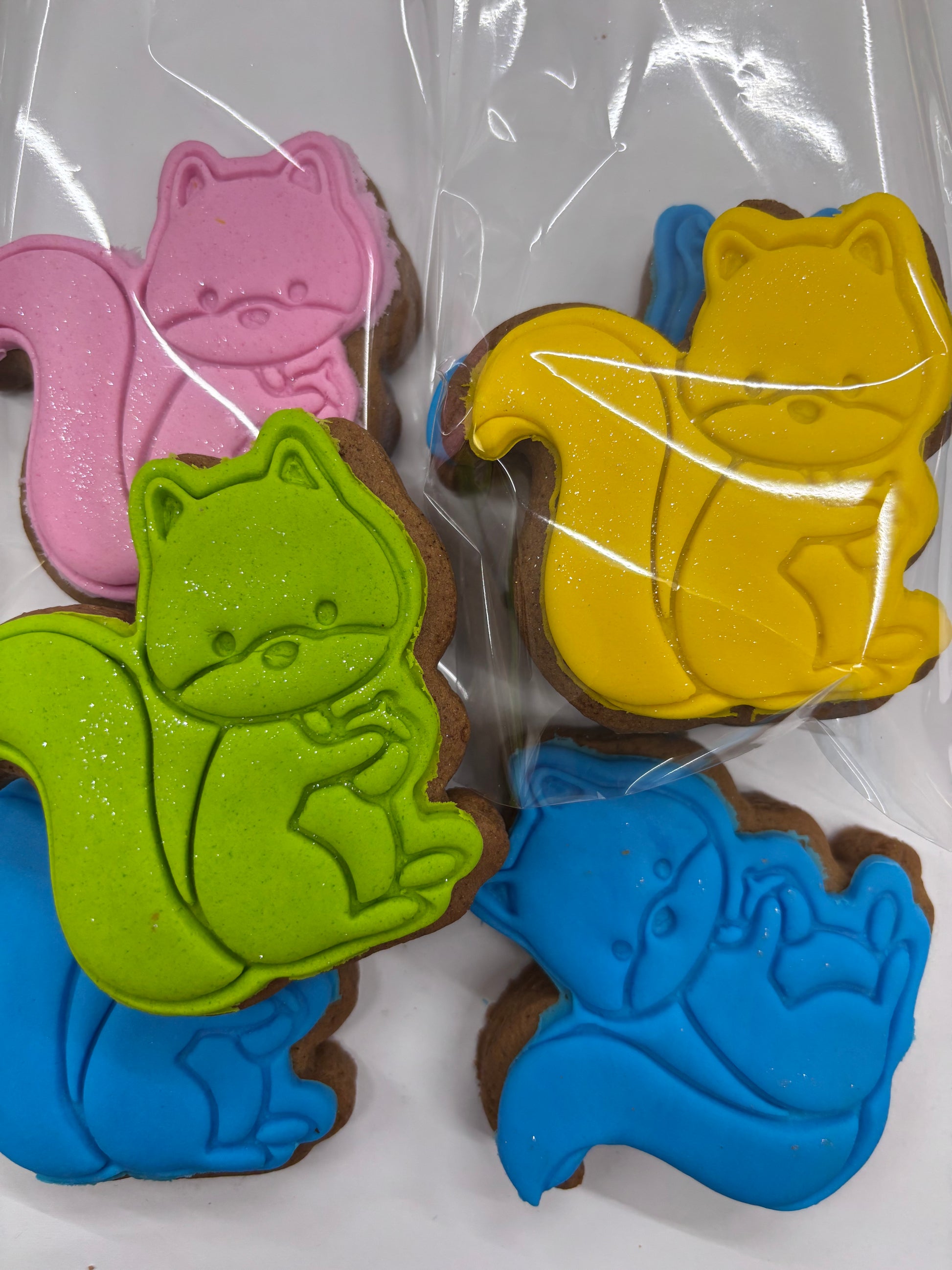 Our mini squirrel gingerbread cookie is an absolute delight.Topped with finding icing.