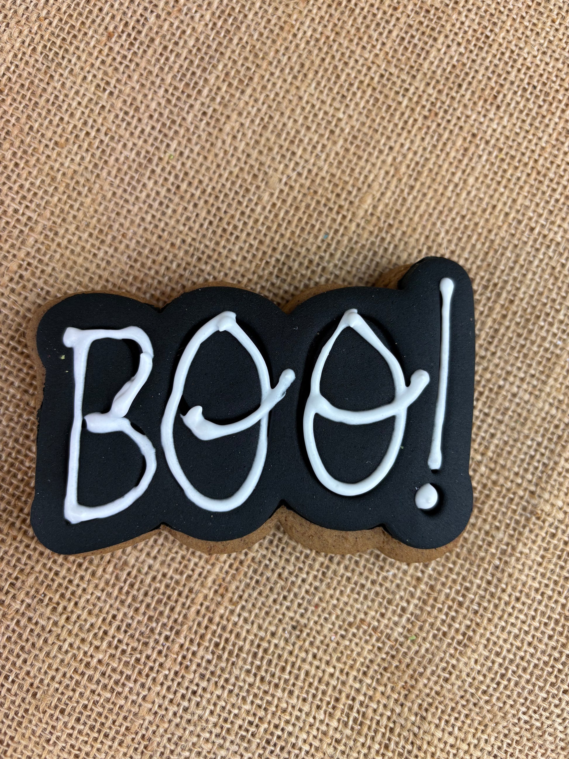 say BOO! But make it sweet with this fondant and royal icing topped gingerbread cookie