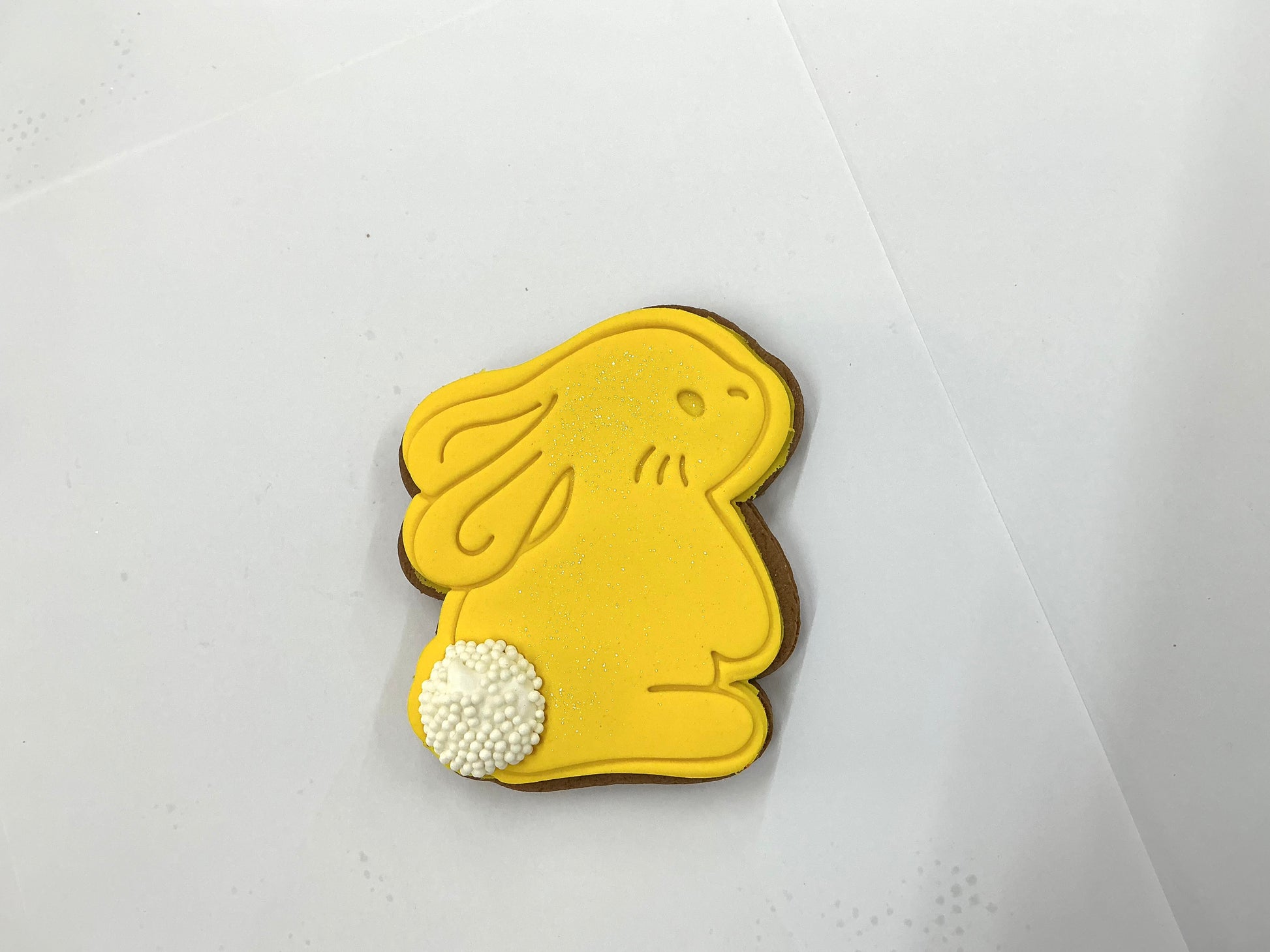 This adorable gingerbread bunny is loved by all. Topped with fondant icing and white sprinkles