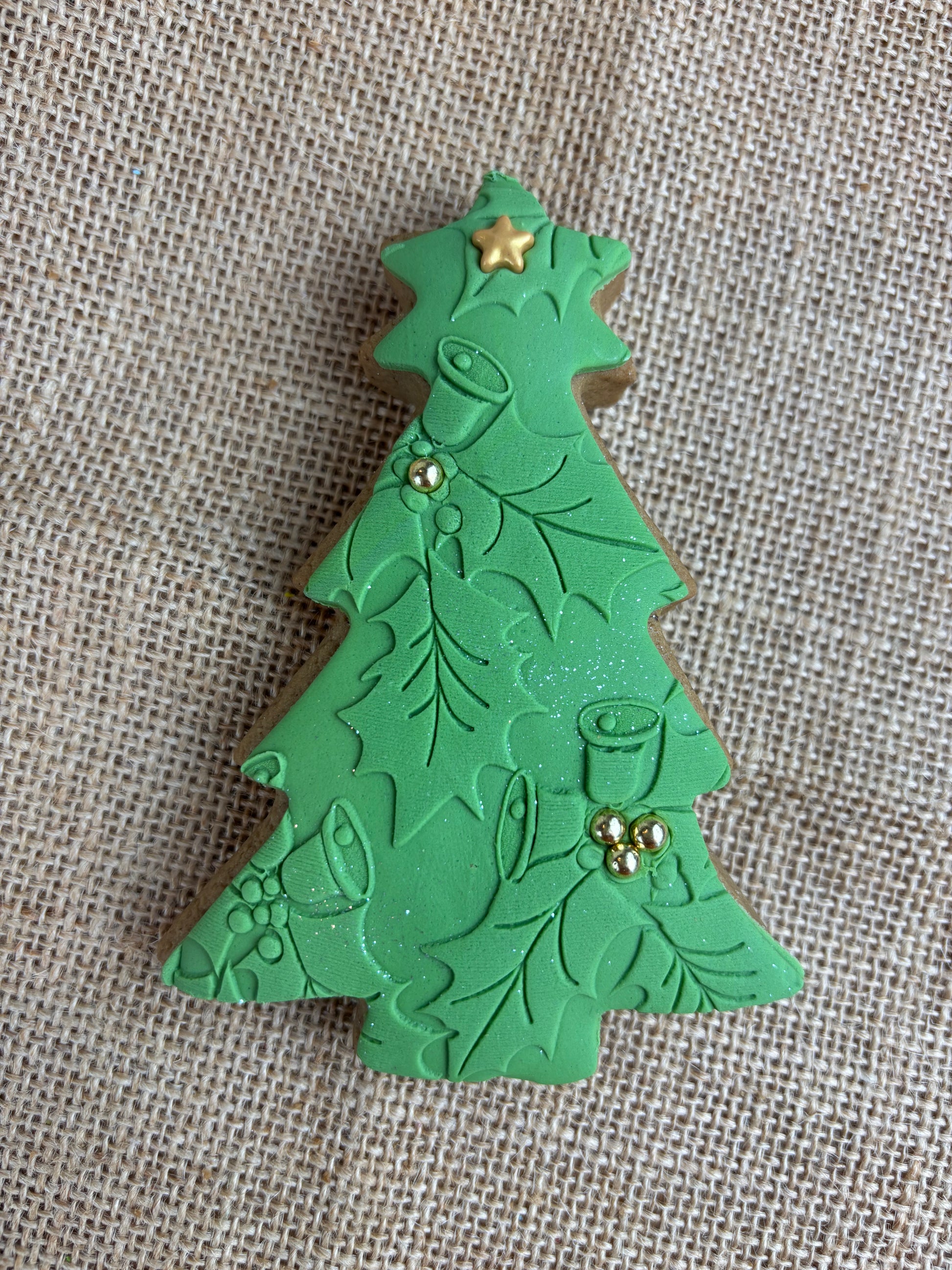 O Christmas Tree, O Christmas Tree, this fondant and gold cachous topped gingerbread cookie is full of festive spices.