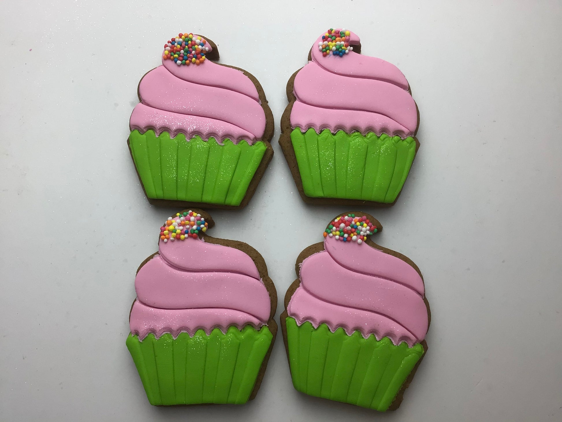 Cupcake gingerbread cookie topped with fondant and sprinkles