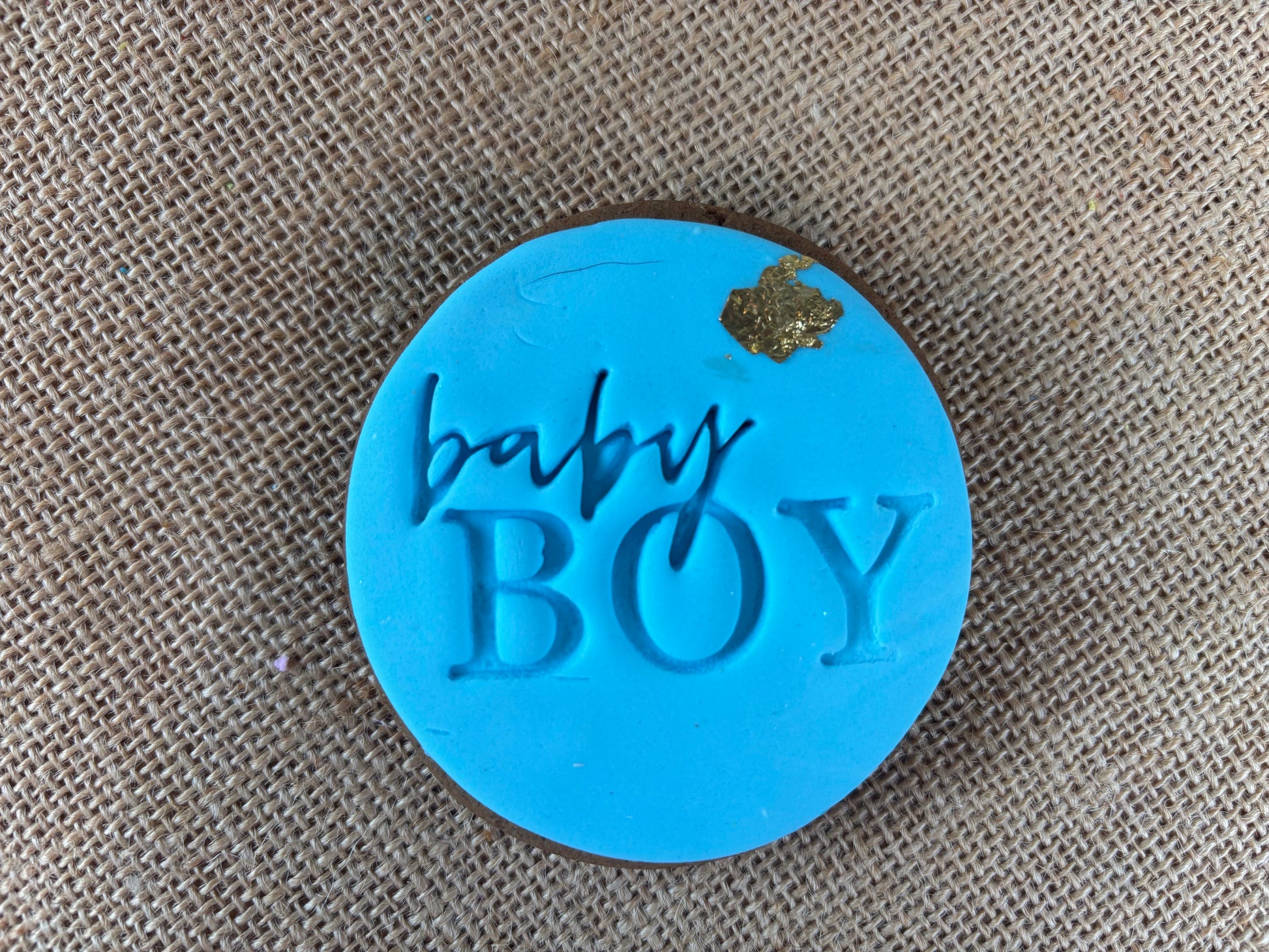 Adorable teddy gingerbread cookie topped with pastel blue fondant.